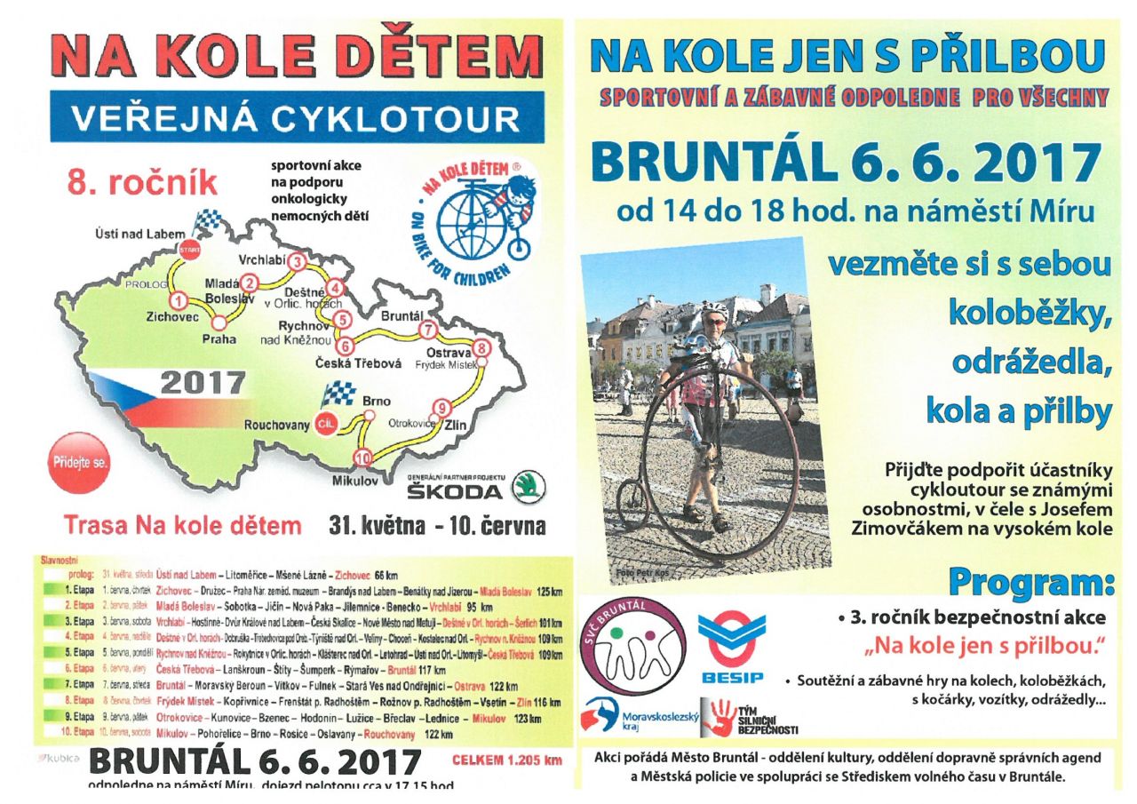 6.6.2017 Bruntál - veřejná cyklotour na podporu onkologicky nemocným dětem přijďte podpořit účastníky